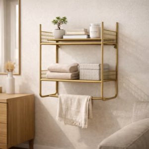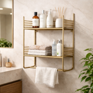Elegant Gold Metal Bathroom Wall Shelf – 2 Stunning Space-Saving Organizer