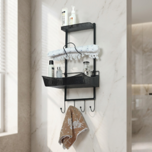 Space- Saving Metal Wall Shelf with Hooks – Durable, Stylish & Smart Storage Solution