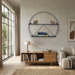 Crafted with premium quality metal and finished with a durable powder coating, the modern metal wall shelf delivers long-lasting strength, rust resistance, and a smooth modern finish. The circular design combined with geometric support bars creates a visually appealing structure that becomes an instant focal point on your wall.