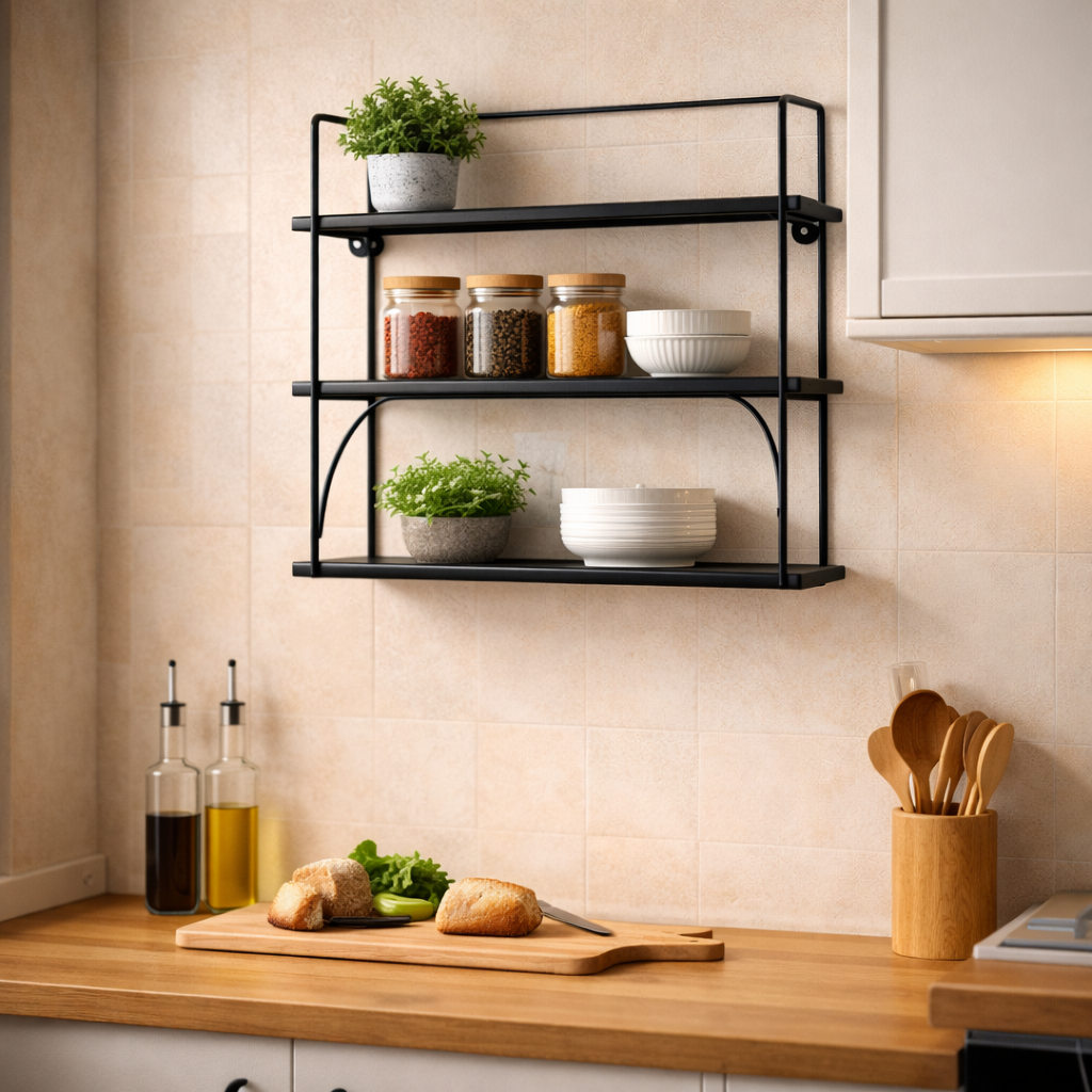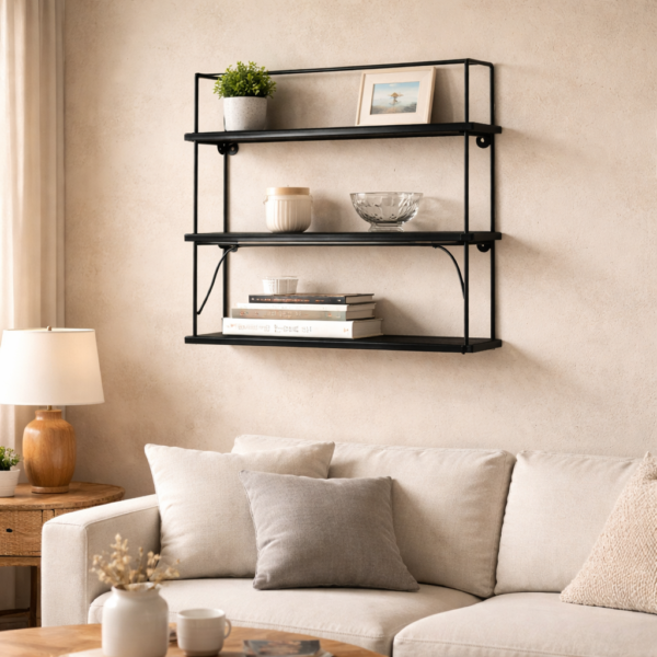 Your black powder-coated metal 3-tier wall shelf benefits greatly from this finishing method. The powder coating protects the metal from rust, corrosion, scratches, and everyday wear, making it ideal for use in living rooms, kitchens, offices, or bathrooms. It also enhances the shelf’s modern appearance, giving it a smooth and elegant look that fits well with contemporary home décor.