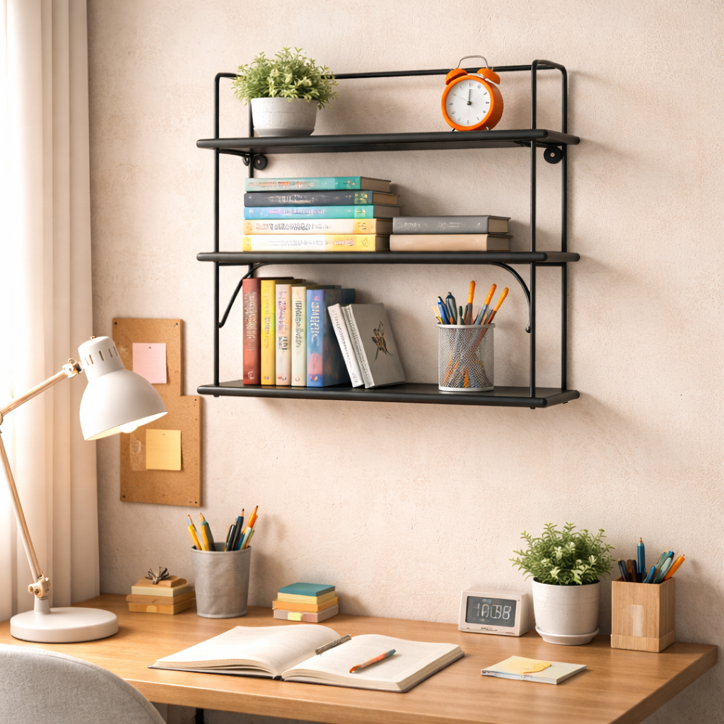 Another advantage of powder coating is that it is environment-friendly and long-lasting compared to traditional paint. The coating bonds strongly with the metal surface, ensuring the shelf remains sturdy, stylish, and low-maintenance for many years. This makes powder-coated shelves a reliable and premium choice for home storage and decoration.