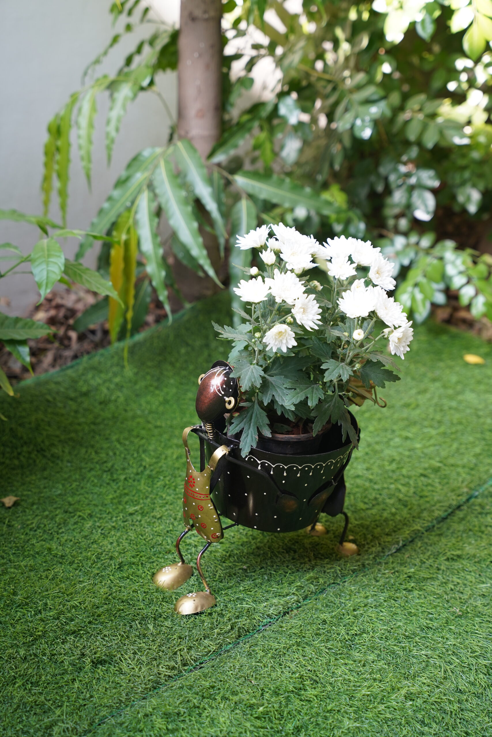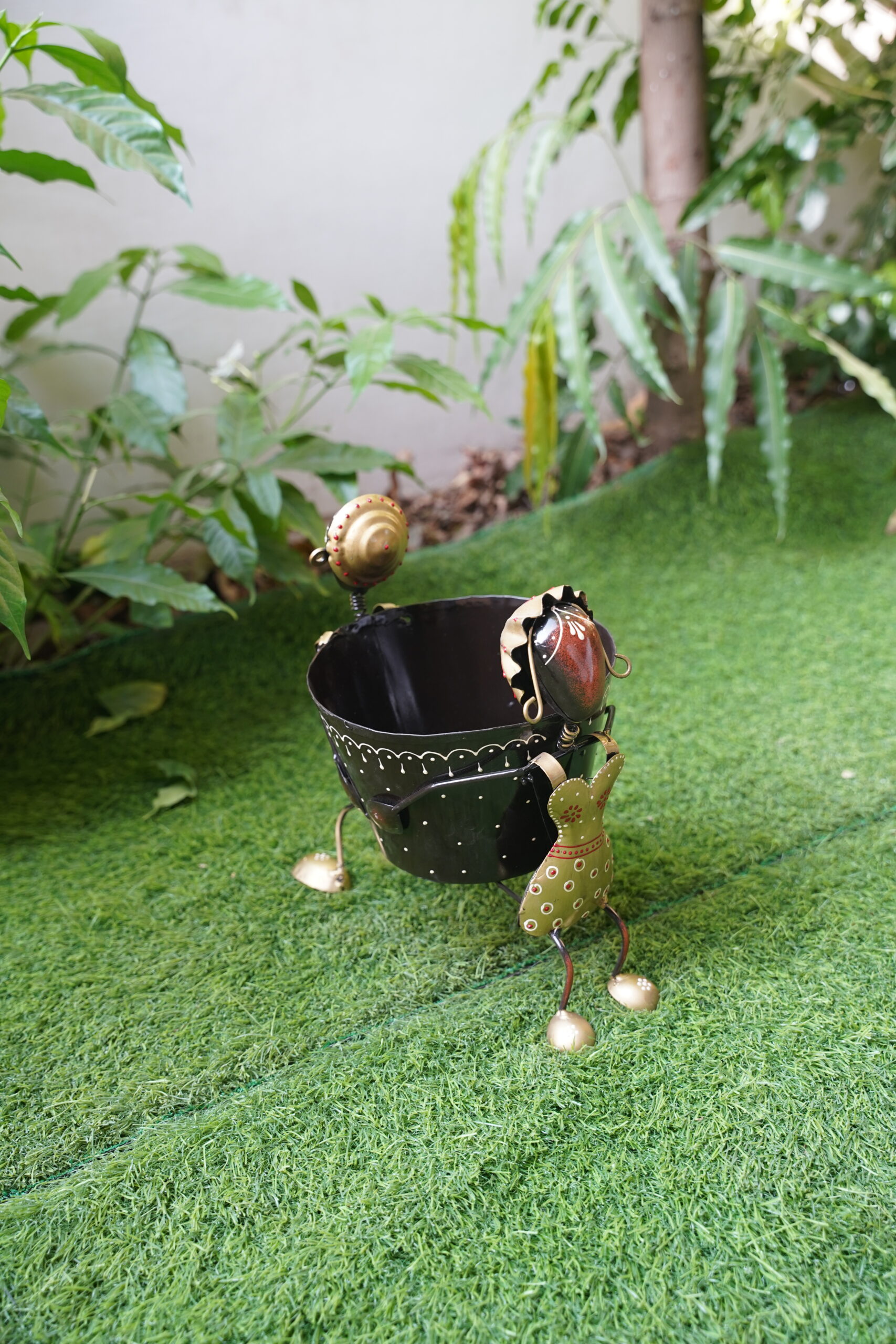 Plants bring freshness, but artistic planters bring personality. This charming metal planter creates a joyful connection between nature and creativity. Every glance at it adds warmth, beauty, and inspiration to your surroundings.