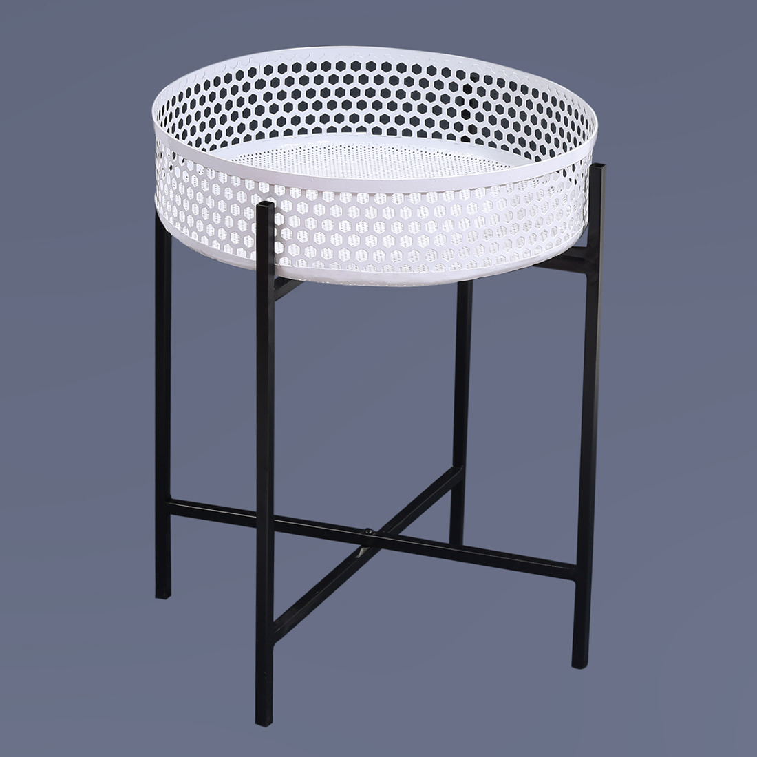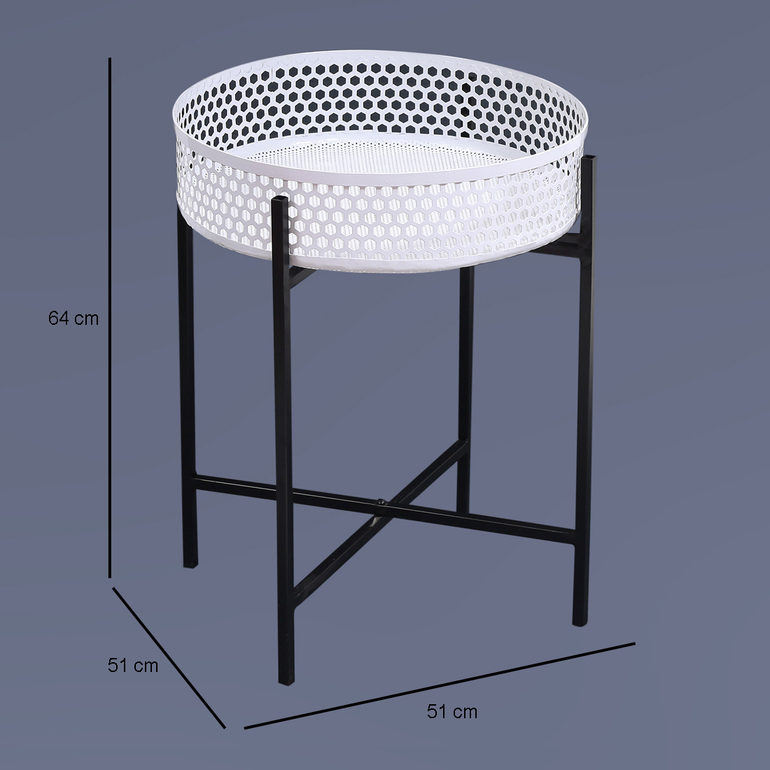 Add style and functionality to your living space with this Round Metal Tray Side Table. Featuring a sturdy black metal stand and a white basket-style top, it’s perfect for placing décor, books, or snacks. Ideal for living rooms, bedrooms, or offices, this lightweight yet durable Premium Round Metal Tray Side Table blends seamlessly with contemporary interiors.