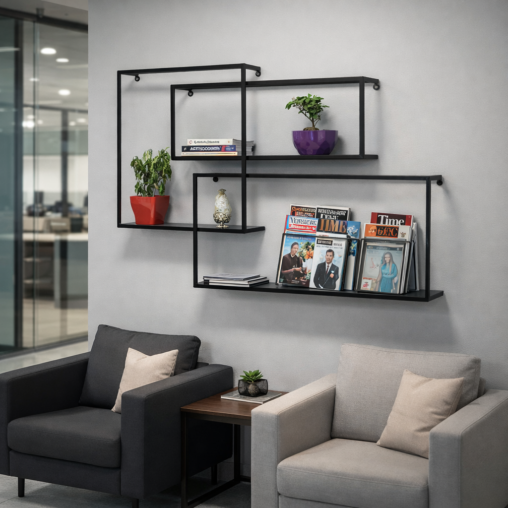 Modern homes often face space limitations, especially in apartments and compact living spaces. The Geometric Metal Wall Shelf solves this problem by utilizing vertical wall space.
