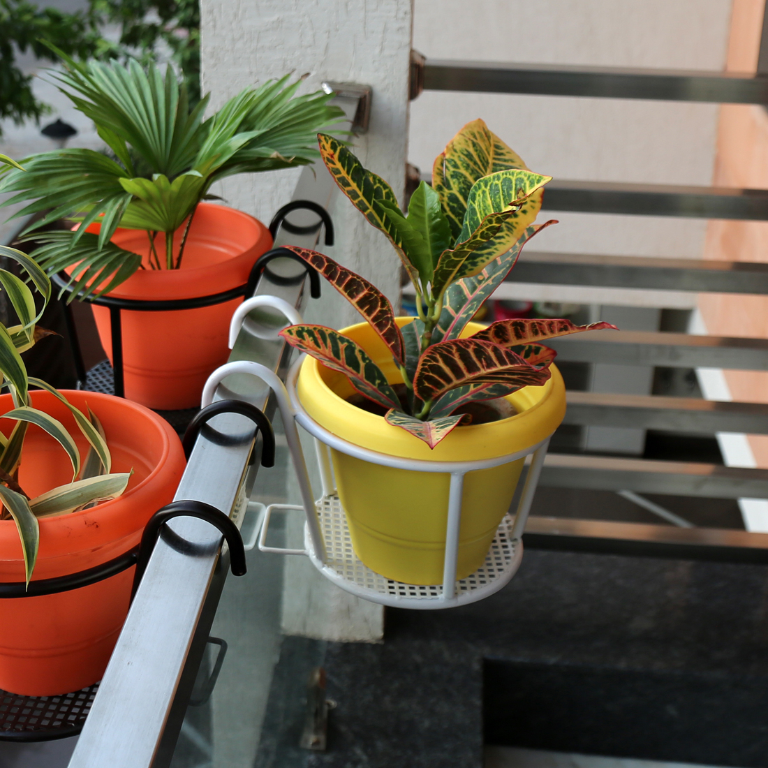 Versatility in Vibe Imagine a row of vibrant Crotons, elegant Song of India, or cascading Ivy hanging right at eye level. By elevating your greenery, you create a natural privacy screen that filters light and softens the hard lines of city architecture. Whether you are growing a culinary herb garden or a collection of tropical succulents, these stands turn your railing into a living art gallery.
