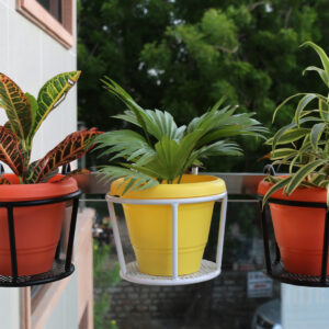 Stylish and durable metal Rust-Proof Railing Planter Stand designed to hold flower pots securely on balconies, windows, and railings. Made from sturdy iron with a rust-resistant coating, it offers space-saving greenery while enhancing your home décor indoors or outdoors.