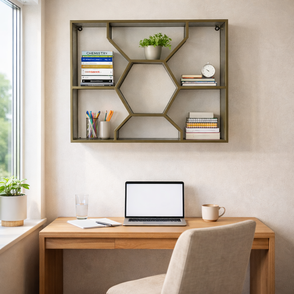 Upgrade your home décor with this Modern Heavy Duty Metal Wall Shelf, a perfect blend of artistic design and practical storage. Featuring a unique honeycomb-inspired structure, this stylish metal wall shelf adds a contemporary aesthetic while offering multiple compartments for displaying books, plants, décor items, and collectibles. Crafted with durable metal and a premium finish, it brings both strength and elegance to any living room, bedroom, office, or hallway.