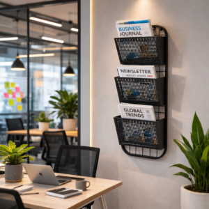 Elegant 3 Pocket Metal Wall Shelf- Space Saving Solution for Modern Home & Office